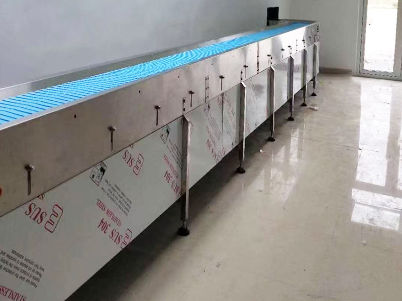 1.PP drive wheels move flat trays along the stainless steel surface,ensuring a noiseless conveying process.