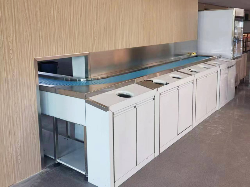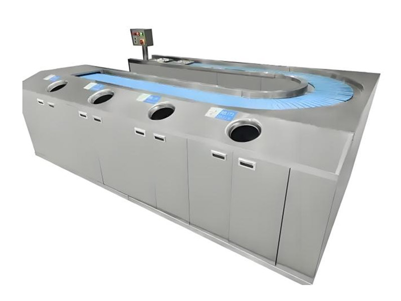 9.An optional return cabinet is located on the outside,featuring sorting drop-off openings for tableware and waste,with an open-door design for convenient transportation of sorted items and scraps.(Optional)