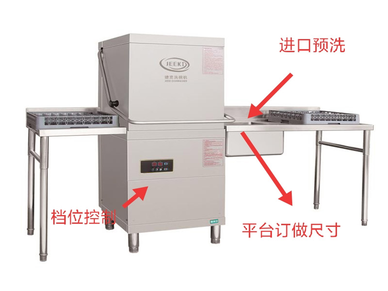 The hood type dishwasher has three cycle time settings: typically 60 seconds, 90 seconds, or 120 seconds per rack. This means one minute, one and a half minutes, or two minutes per rack, allowing you to adjust the washing speed based on the grease level of the tableware.