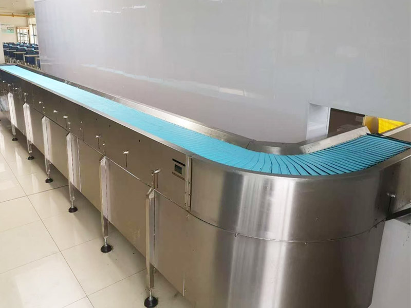 1.PP drive wheels move flat trays along the stainless steel surface,ensuring a noiseless conveying process.